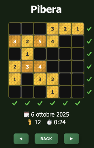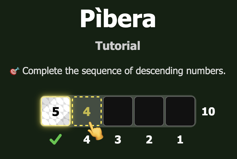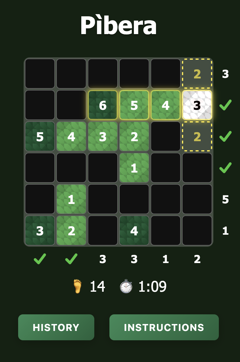 Pìbera is a puzzle game where you form sequences of decreasing numbers on a grid to reduce the edge totals to zero.